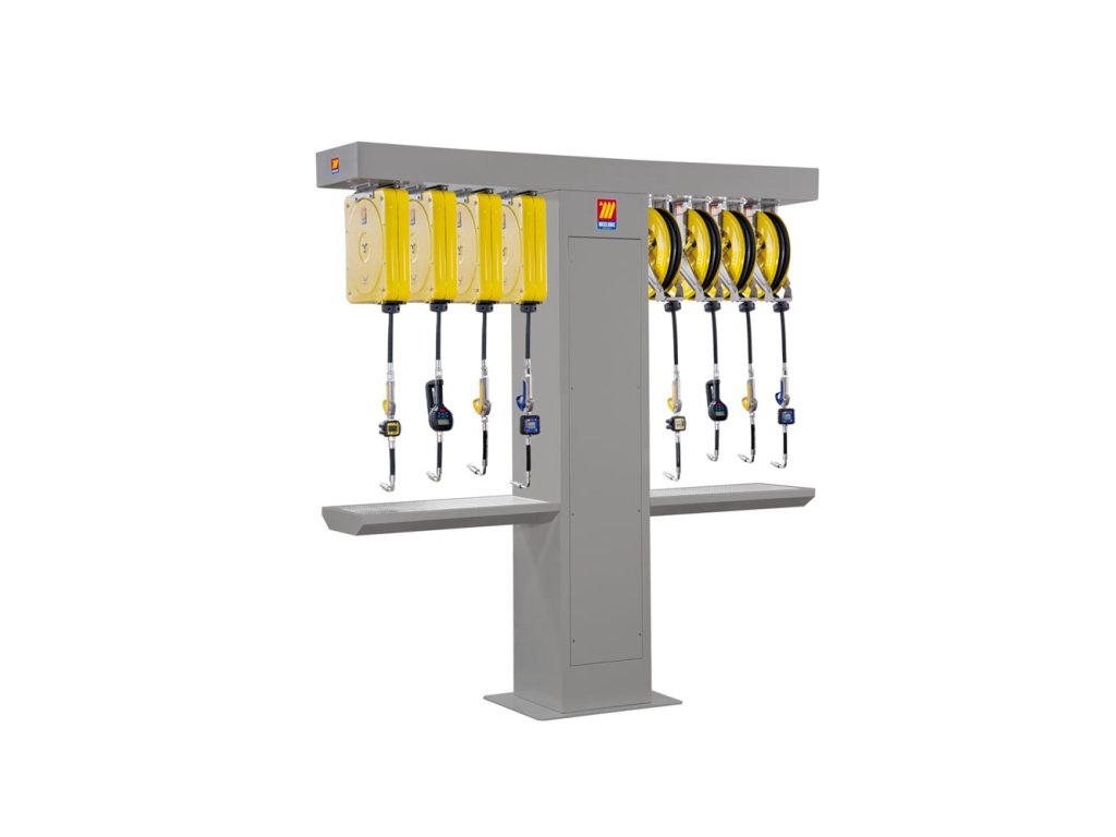 - spenderständer für die Montage von 8 Spulern- ausgestattet mit einer Auffangwanne mit Gitter und Ablauf unter den Zapfpistolen