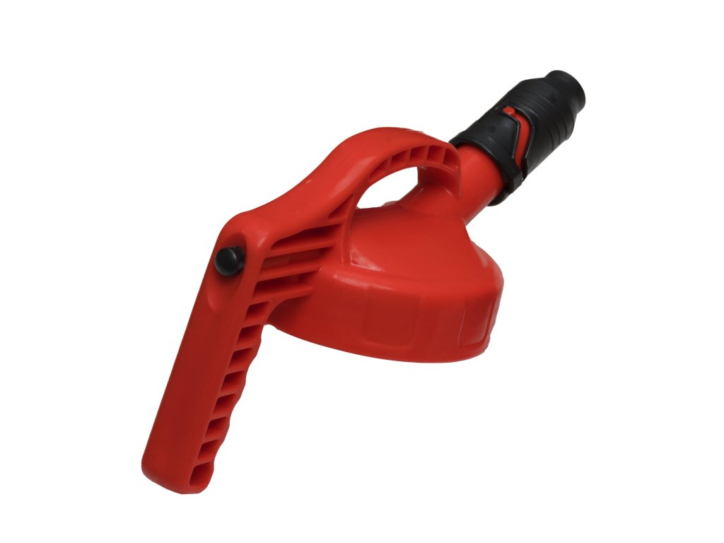 Kunststoffdeckel mit Ausgießer für Ölbehälter. Ideal für präzises Ausgießen an schwer zugänglichen Stellen. Das System ist vollständig mit dem OIL SAFE-System kompatibel.Der Ausgießer öffnet sich über einen Auslöser am Griff.
