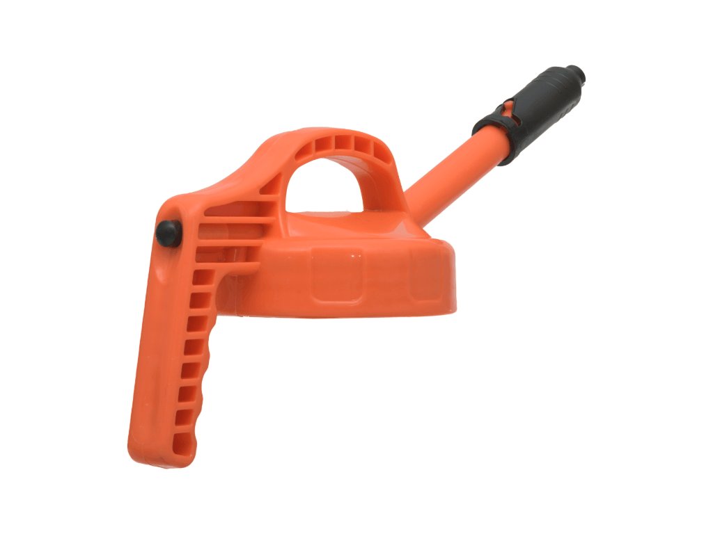 Kunststoffdeckel mit Ausgießer für Ölbehälter. Ideal für präzises Ausgießen an schwer zugänglichen Stellen. Das System ist vollständig mit dem OIL SAFE-System kompatibel.Der Ausgießer öffnet sich über einen Auslöser am Griff.