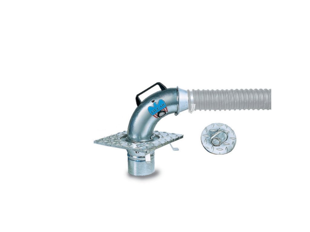 - Bodenhaube aus verzinktem Stahlblech zum Anschluss des Abluftkrümmers.- Konzipiert für Pkw und Lkw.