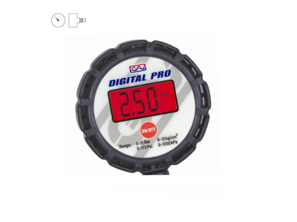 - Digitales Manometer mit rückseitigem 1/4"-Anschluss;