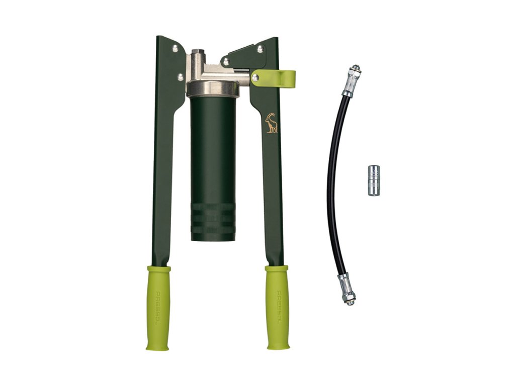 Beschichtung des Schmierpressenrohrs: moosgrün, RAL 6005