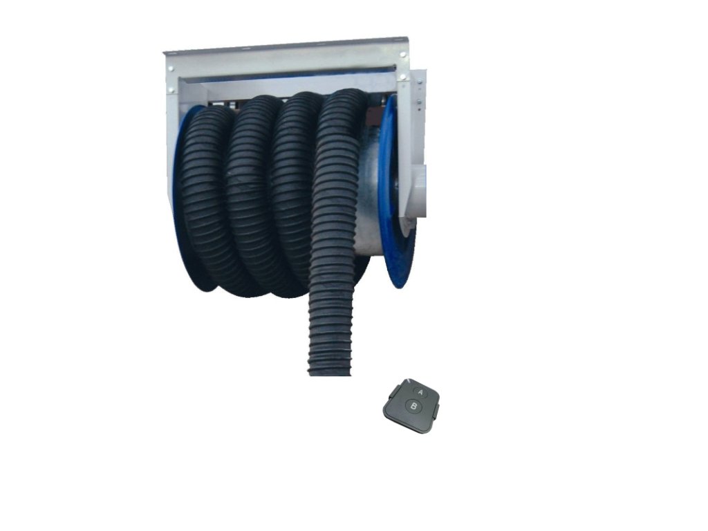 - Automatische Schlauchhaspel mit Fernbedienung zum Ziehen/Absenken des Saugschlauchs.- Geeignet für die Abgasabsaugung von Lkw.