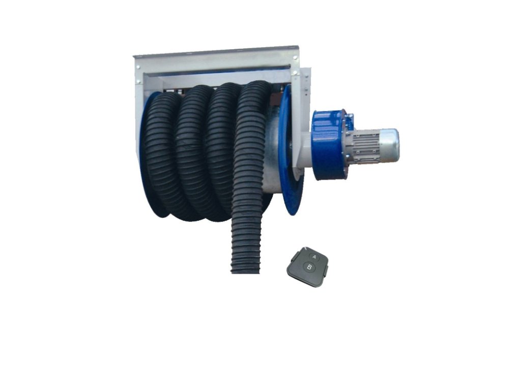 - Automatische Schlauchhaspel mit Fernbedienung zum Ziehen/Absenken des Saugschlauchs.- Angeschlossen an einen Ventilator mit automatischem Start.