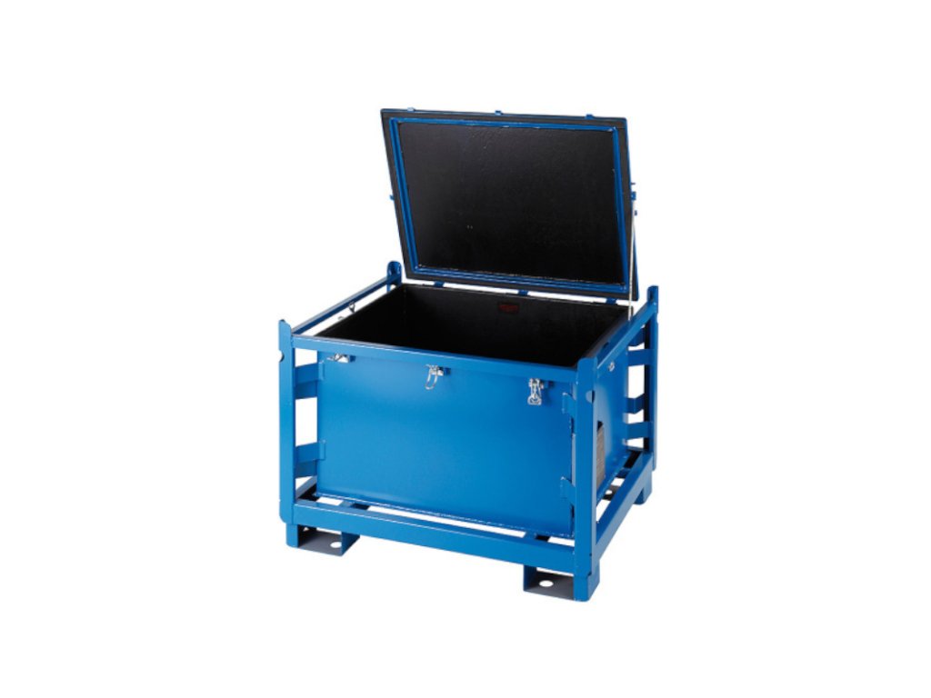 - Der Behälter ist mit einem verschließbaren Deckel ausgestattet.