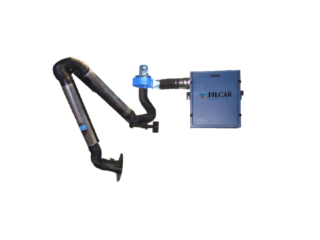 - Ein Haubensatz bestehend aus einem Gelenkarm in verschiedenen Längen und einer Haube aus Stahlblech, die direkt mit der mechanischen Filtereinheit STARFILTER verbunden ist.