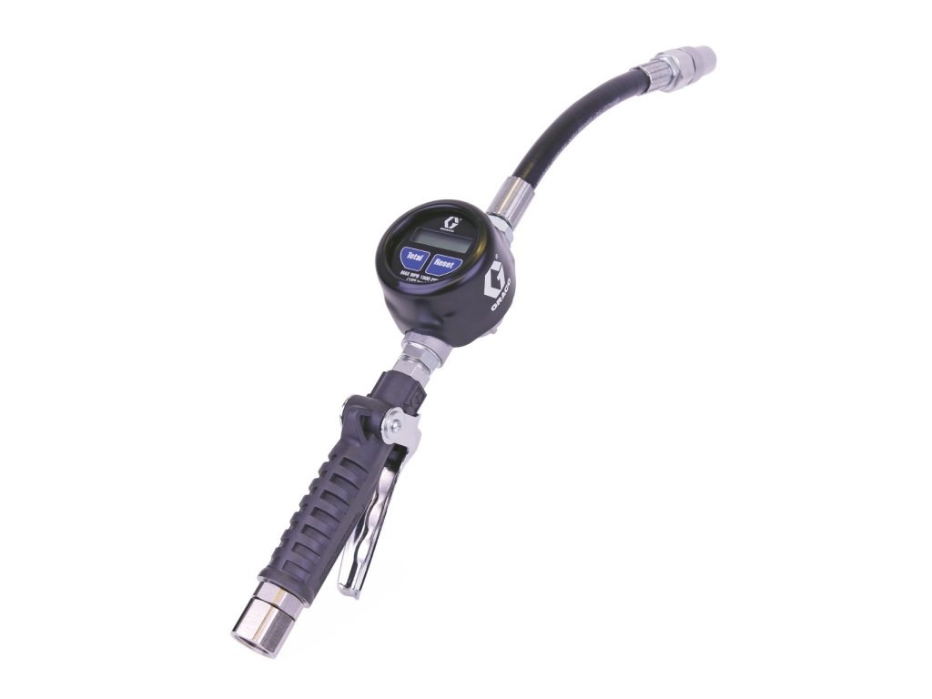 Professionelle manuelle Dosierpistole mit kalibrierbarem digitalem Durchflussmesser für die Abgabe von Öl und Kühlmittel. Konzipiert für den Einsatz in Pkw- und Lkw-Werkstätten sowie für den Schwerlastbereich. Gummiertes Durchflussmessergehäuse mit hoher Stoß- und Fallfestigkeit. Schutzart IP69K - Schutz gegen direktes Hochdruckreinigen und Staub. Hohe Batterielebensdauer.