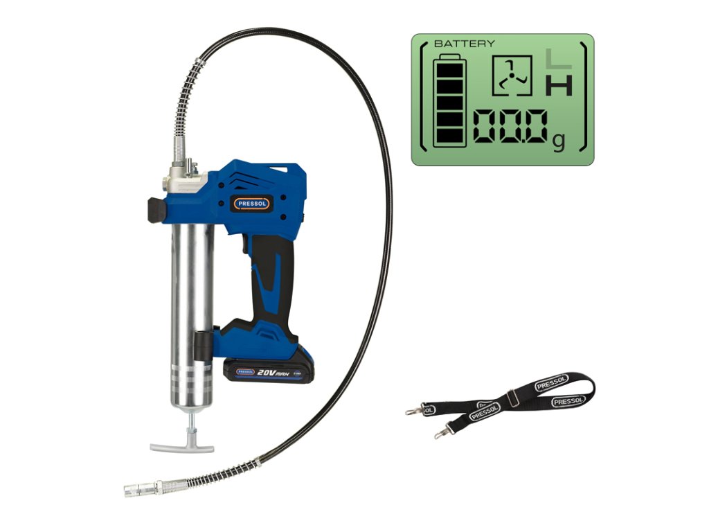 Integriertes Display zur Anzeige von gepumptem Schmiermittel, Batterieladung und Druckvolumen