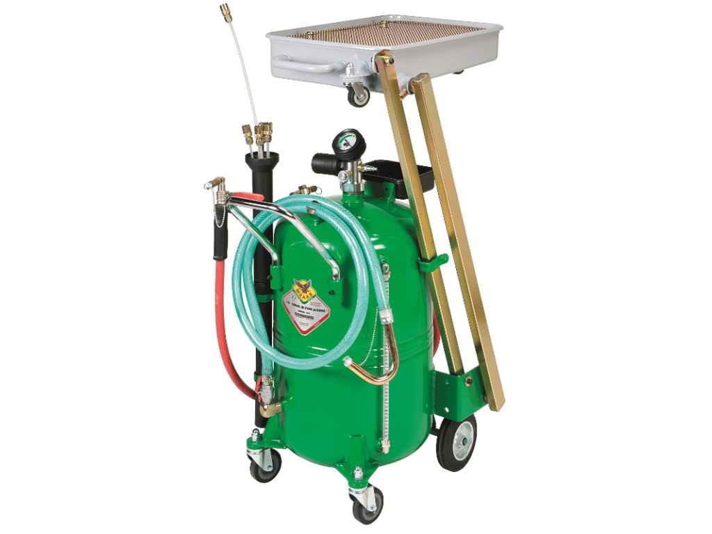 - zum Absaugen und Ableiten von Altöl- der Stromabnehmer ermöglicht ein bequemes Verschieben der Auffangwanne unter der Einleitstelle