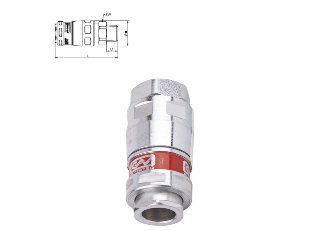 - AIRBLOCK Druckluftsicherheitskupplungen ermöglichen das Trennen der Verbindung, ohne dass die Gefahr besteht, dass der Schlauch herausgeschleudert wird, da die Kupplung erst geschlossen und dann drucklos gemacht wird.