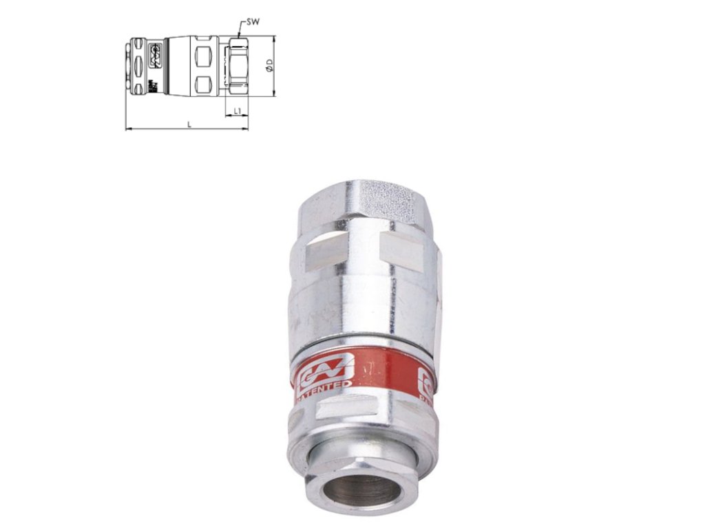 - AIRBLOCK Druckluftsicherheitskupplungen ermöglichen das Trennen der Verbindung, ohne dass die Gefahr besteht, dass der Schlauch herausgeschleudert wird, da die Kupplung erst geschlossen und dann drucklos gemacht wird.