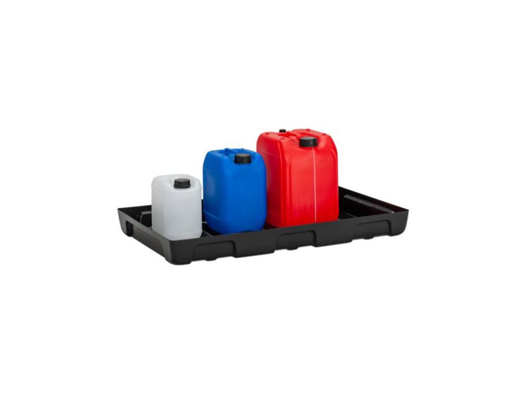 Auffangwanne zum Aufstellen in einem Regal.