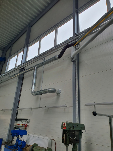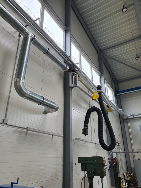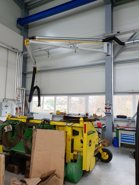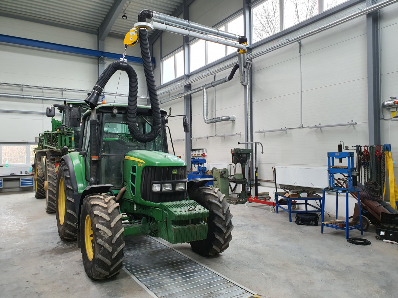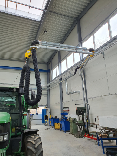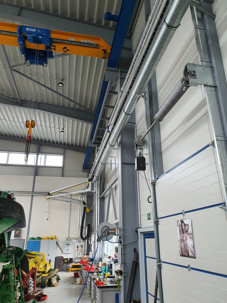 Lieferung einer kompletten Abgasabsaugung für das Servicecenter des Landtechniklieferanten Agrozet České Budějovice. Die Absaugung erfolgt über große Klapparme, die mit einem Absaugschlauch und einem Endstück am Balancer ausgestattet sind. Lieferung inkl. kompletter Elektroinstallation.