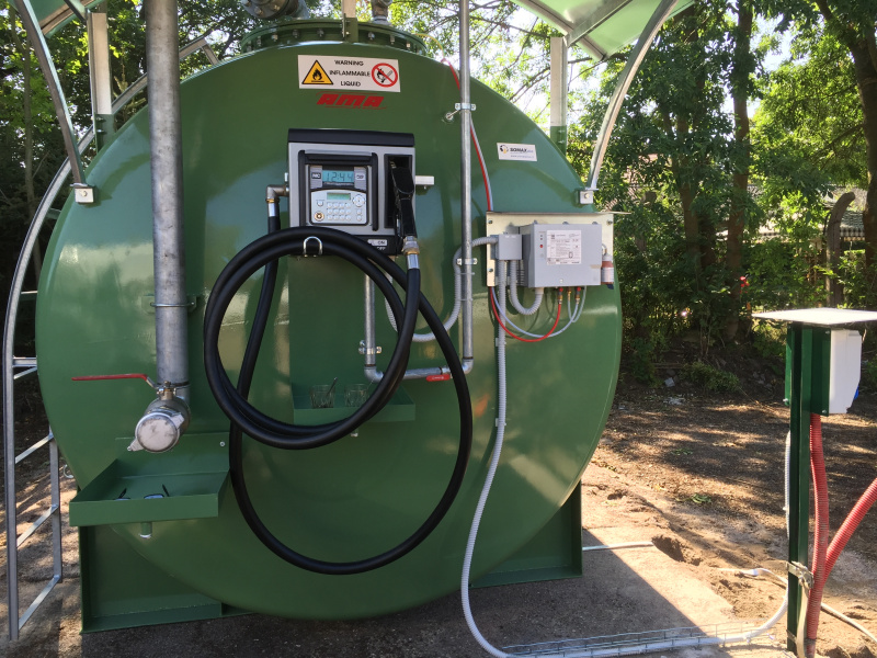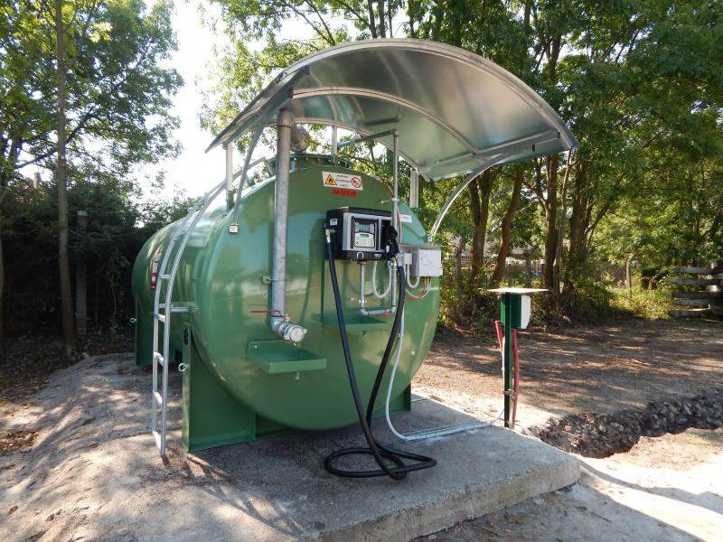 Betriebsinterne Tankstelle für das Nationalgestüt Kladruby nad Labem. Vollmetall-Doppelwandtank mit elektronischer Messung des Zwischenraums. Dieselausgabe über eine Zapfsäule mit elektronischer Erfassung und Datenübertragung an einen PC.