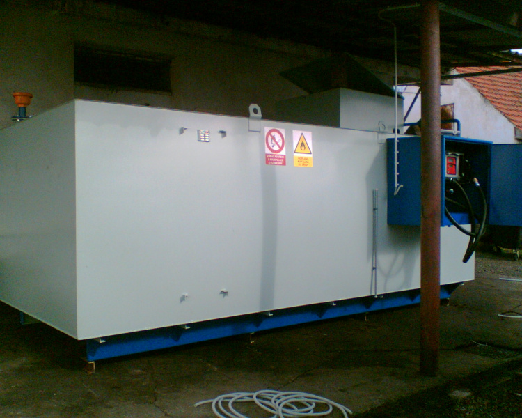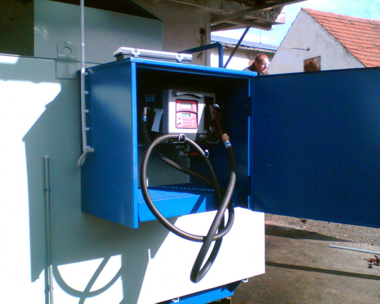 Lieferung einer betriebsinternen Tankstelle für Dieselkraftstoff mit einem doppelwandigen, vollständig aus Metall gefertigten quadratischen Tank. Elektronischer Zapfsäulenstand für die Erfassung der Abgaben mit Anschluss an eine PC-Software, untergebracht in einem abschließbaren Metallschrank.