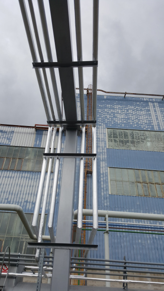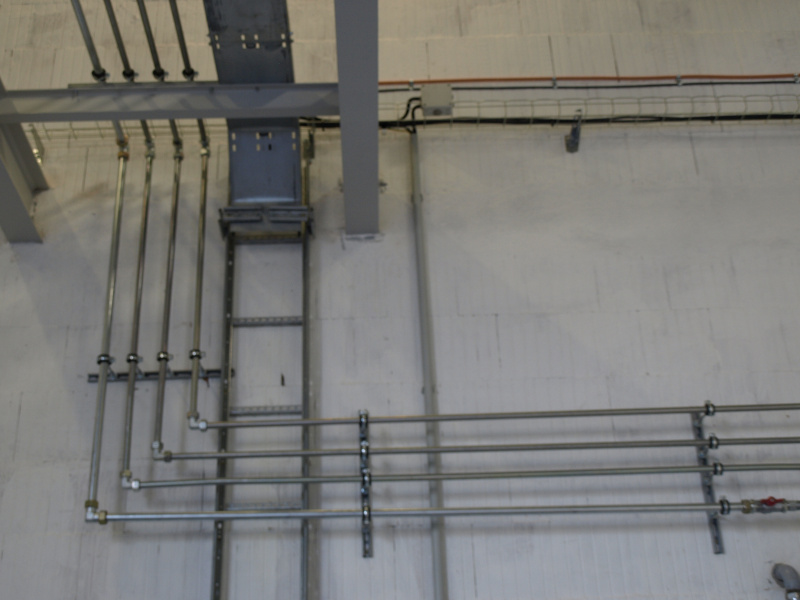 Die Verteilungen wurden aus Stahlrohren an den erforderlichen Stellen mit Isolierung ausgeführt.