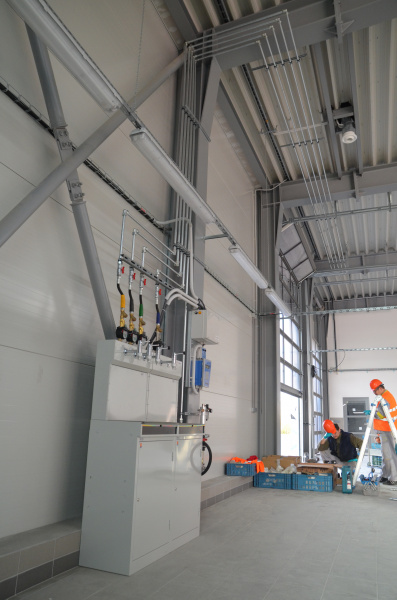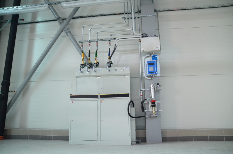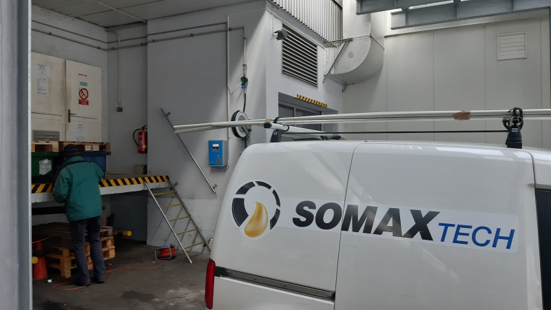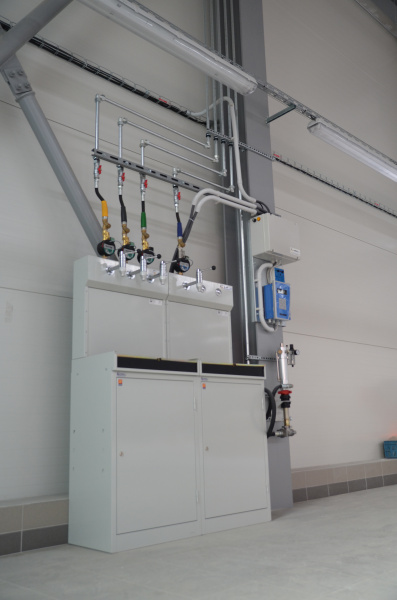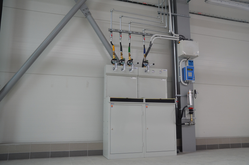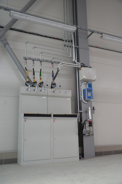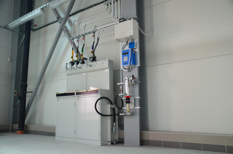 Komplette Realisierung der Ölwirtschaft für den größten Autohändler in der Tschechischen Republik. Ausgabe neuer Öle an Ölspendern. Alles ist an ein elektronisches Ölverteilungssystem mit Benutzer- und Auftragserfassung und automatischem Export in das übergeordnete Helios-System angeschlossen. Das Altöl wird in doppelwandigen quadratischen Tanks gelagert. Das Befüllen und Absaugen der Öle erfolgt über einen an der Fassade angebrachten Abfüllschrank.