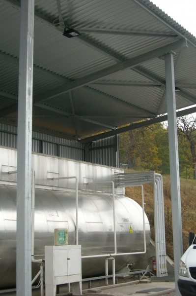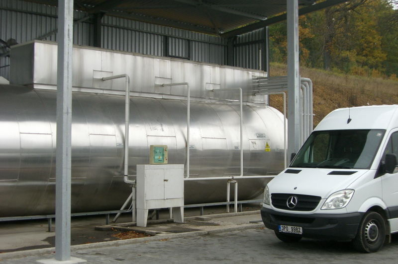 Lieferung eines doppelwandigen Mehrkammertanks für die Produktion von BOBCAT Dobříš. Tank inkl. Isolierung und Beheizung. Jede Kammer mit Füllstandsmessung und GSM-Übertragung der Füllstandsdaten. Verteilung an die Produktion mittels industrieller Pneumatikpumpen, die an ein doppelwandiges Stahlverteilersystem im Boden angeschlossen sind.