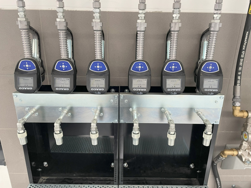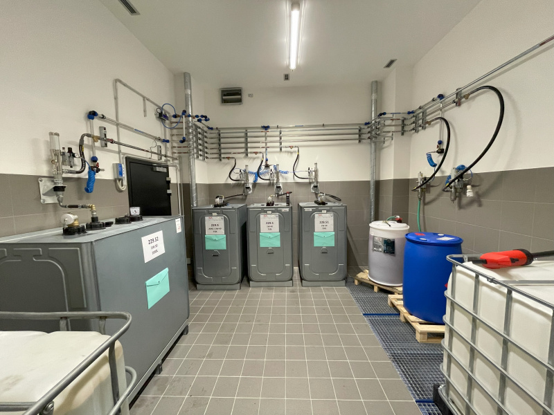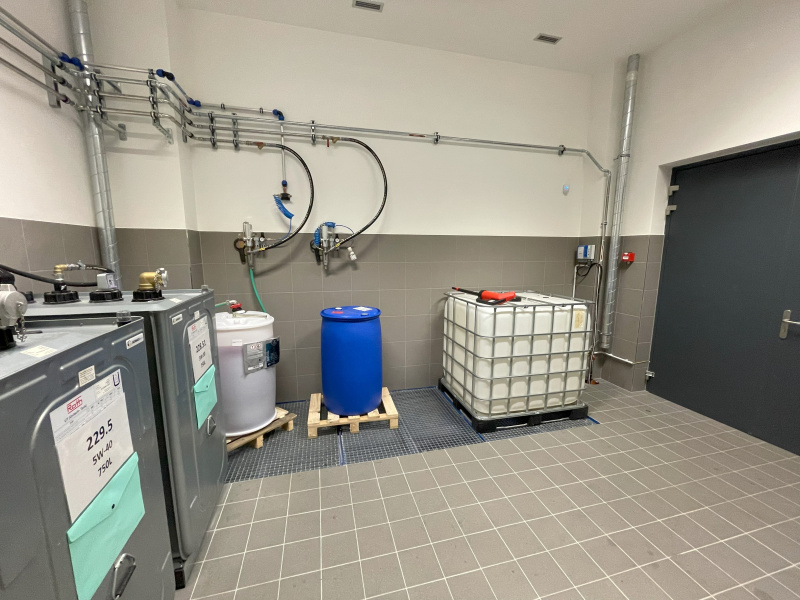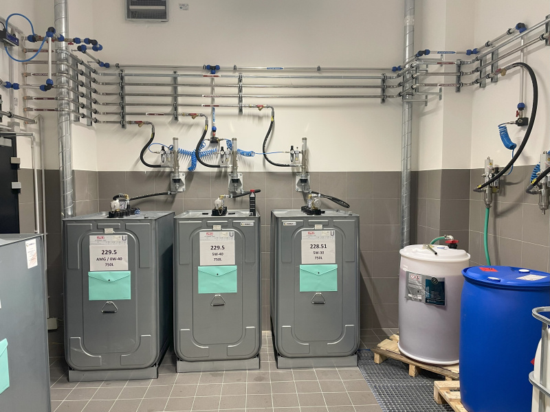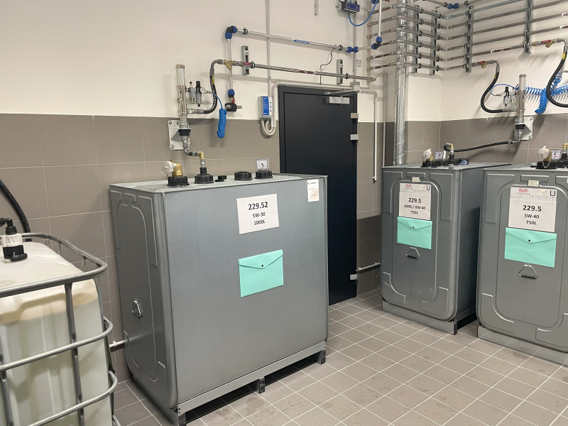 Wir haben die Mercedes-Benz Fa Rene-Werkstatt in Pardubice mit einer kompletten Ölwirtschaftstechnologie ausgestattet. Wir haben eine Ausgabestation für sechs Arten neuer Flüssigkeiten installiert, die gleichzeitig mit einem neuen drahtlosen Überwachungssystem Pulse Pro ausgestattet ist, das an das übergeordnete DMS-System angeschlossen ist. Das Altöl wird in mobilen Absaug-/Ablassvorrichtungen gesammelt und dann von der Ausgabestation in einen unterirdischen Sammelbehälter außerhalb des Gebäudes abgepumpt. Der Füllstand im Tank wird mit einer drahtlosen Sonde gemessen und an das Pulse Pro-System übertragen. Die Ausgabe von AdBlue erfolgt über eine Wandkonstruktion mit Anschluss an einen IBC-Container, der sich in der Ölmühle befindet.