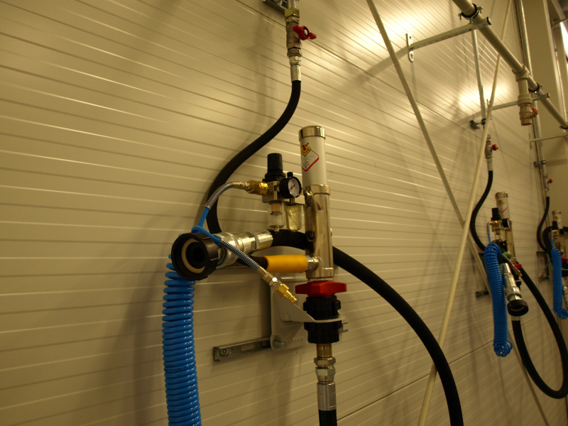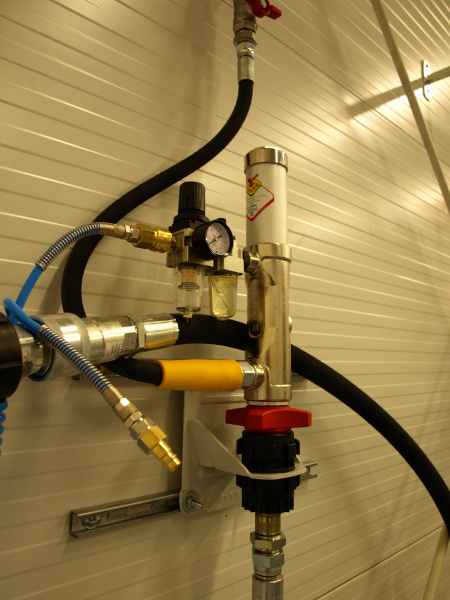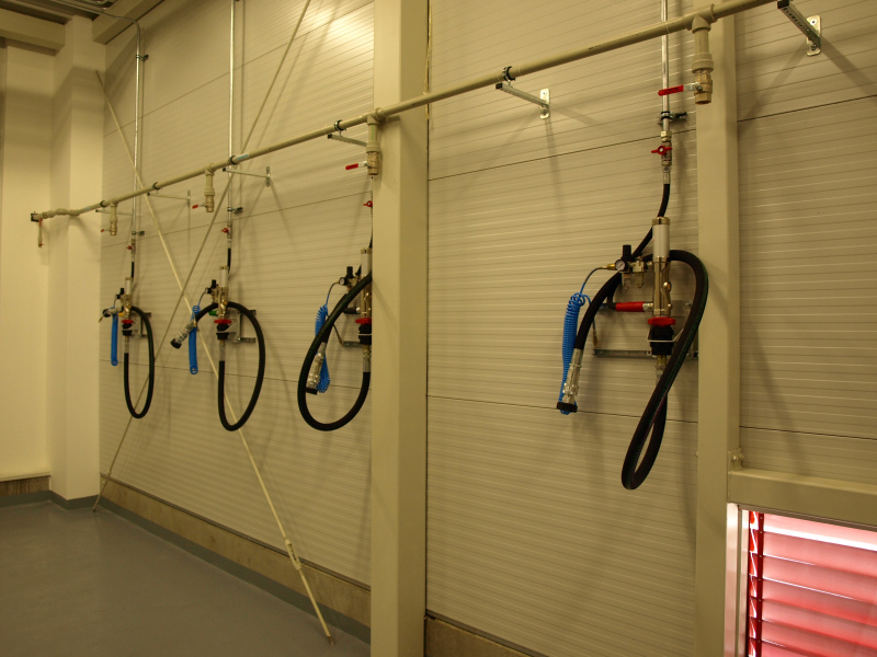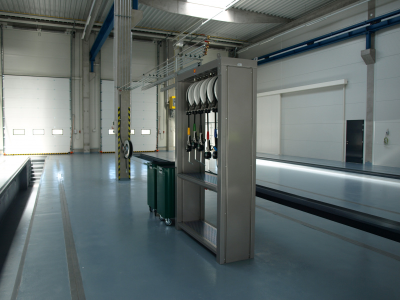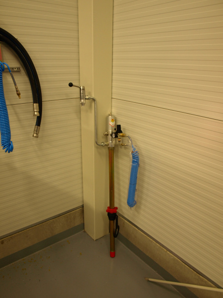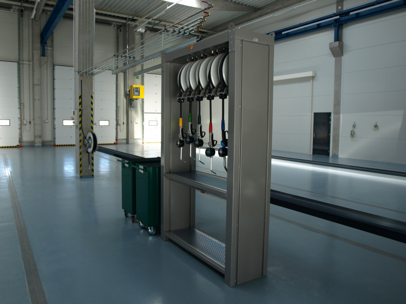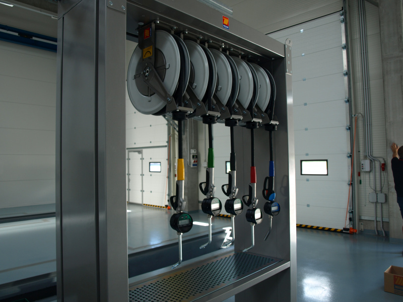 Realisierung einer kompletten Ölwirtschaft für den Master Truck-Service in Měšice. Ölausgabe im Bereich eines fest installierten Ständers mit Aufrollvorrichtung. Der Ständer ist mit einem Überwachungssystem ausgestattet, das Daten an einen PC überträgt und in einem übergeordneten System speichert. Absaugung des Altöls direkt aus einer mobilen Wanne mit pneumatischer Pumpe, die in einer Montagegrube untergebracht ist. Der Tank für Altöl ist mit einem Füllstandssensor mit akustischer und optischer Signalisierung in der Servicehalle ausgestattet.