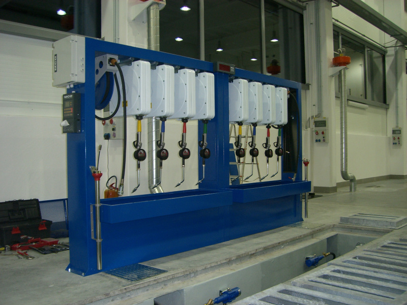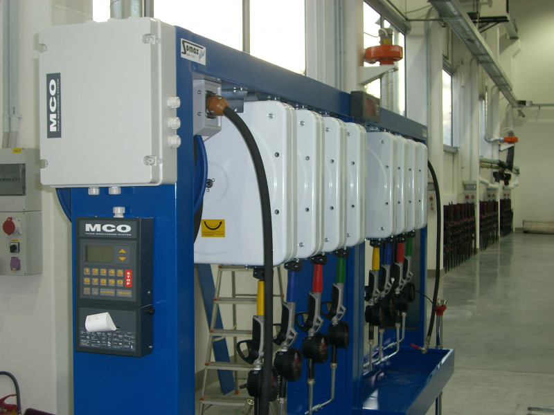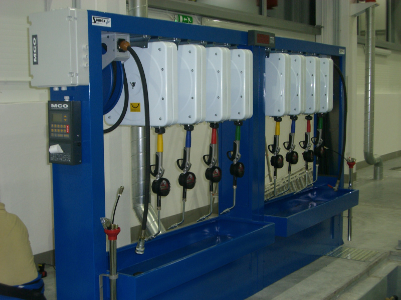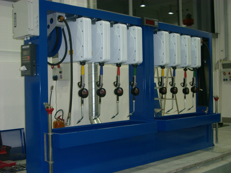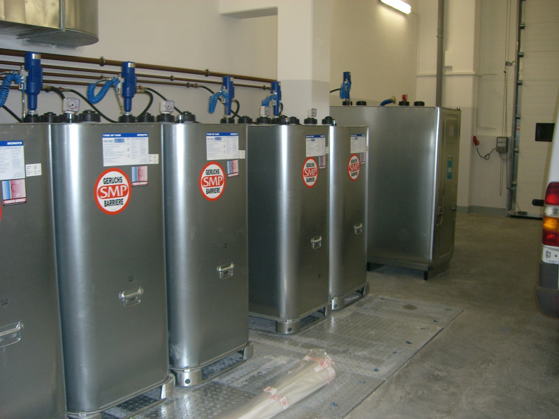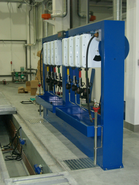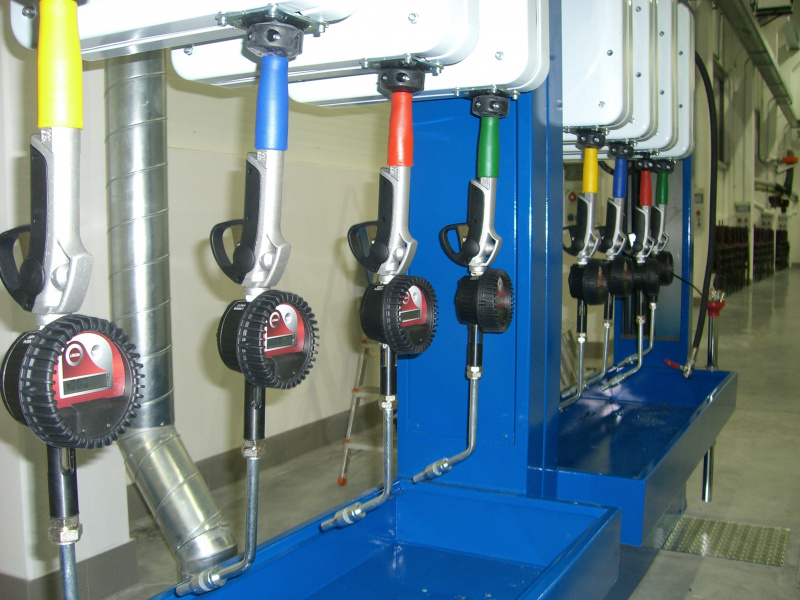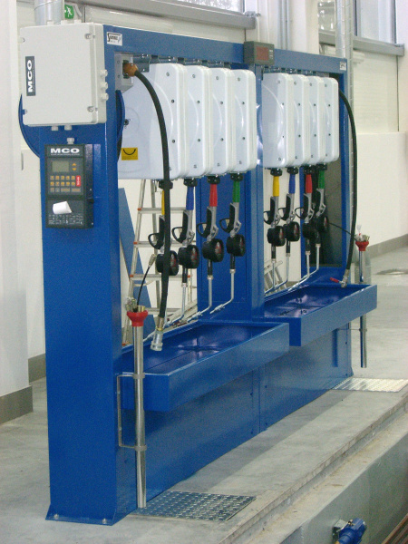 Ausrüstung für die Ausgabe von Ölen und die Sammlung von Altöl für das Servicecenter der Firma Mrózek. Die Ausgabe wird durch ein Überwachungssystem mit Datenübertragung an einen PC gesichert.