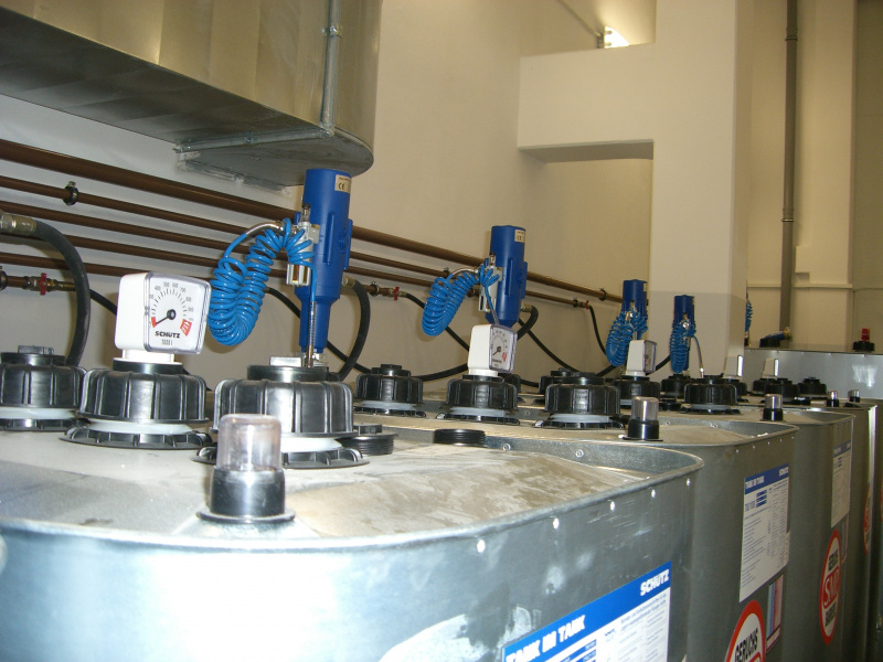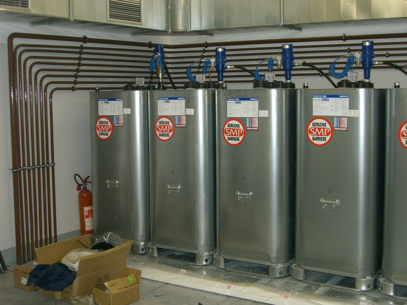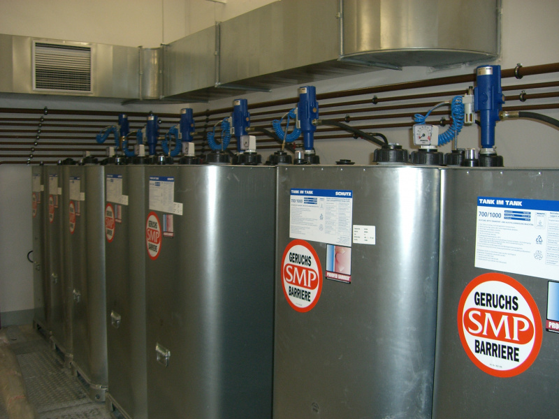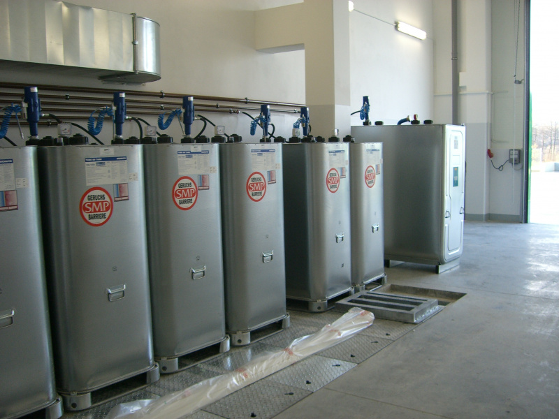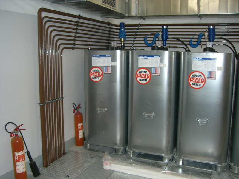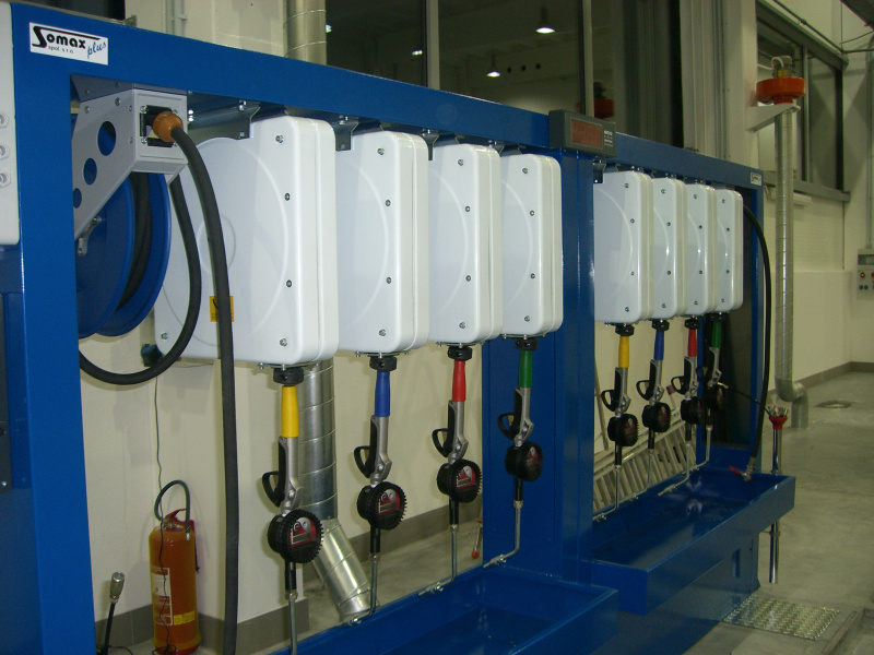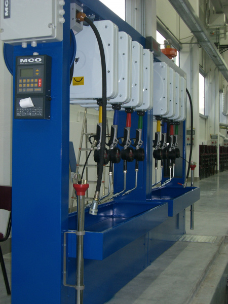 Ausrüstung für die Ausgabe von Ölen und die Sammlung von Altöl für das Servicecenter der Firma Mrózek. Die Ausgabe wird durch ein Überwachungssystem mit Datenübertragung an einen PC gesichert.