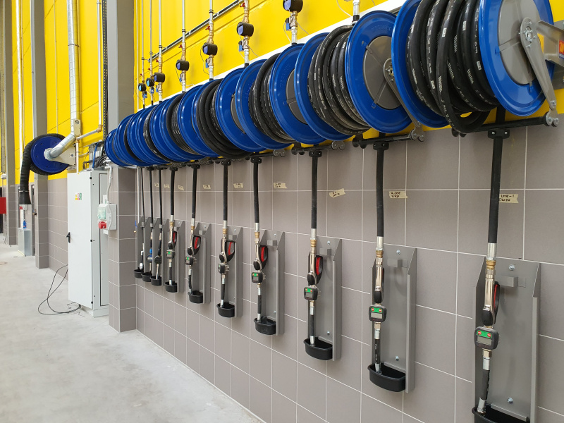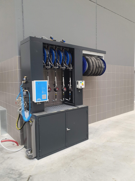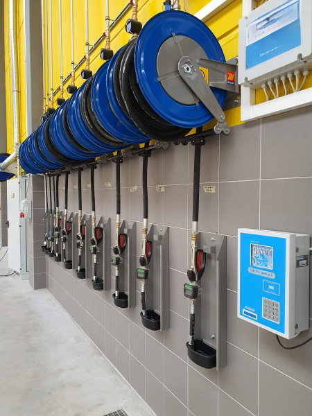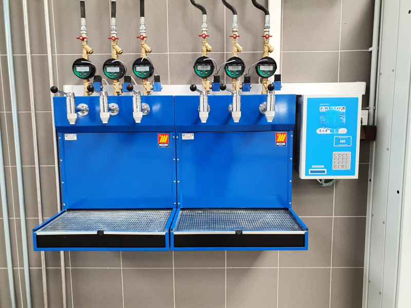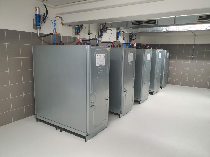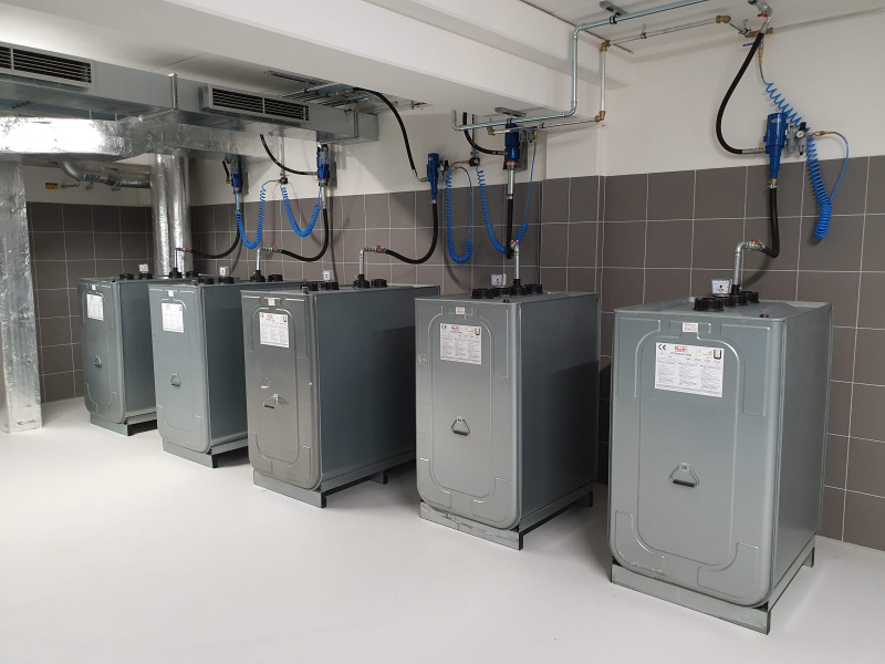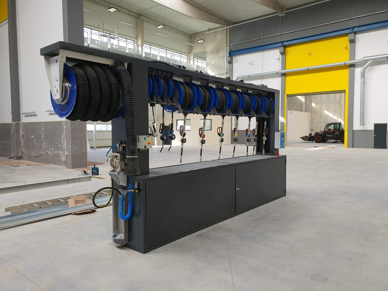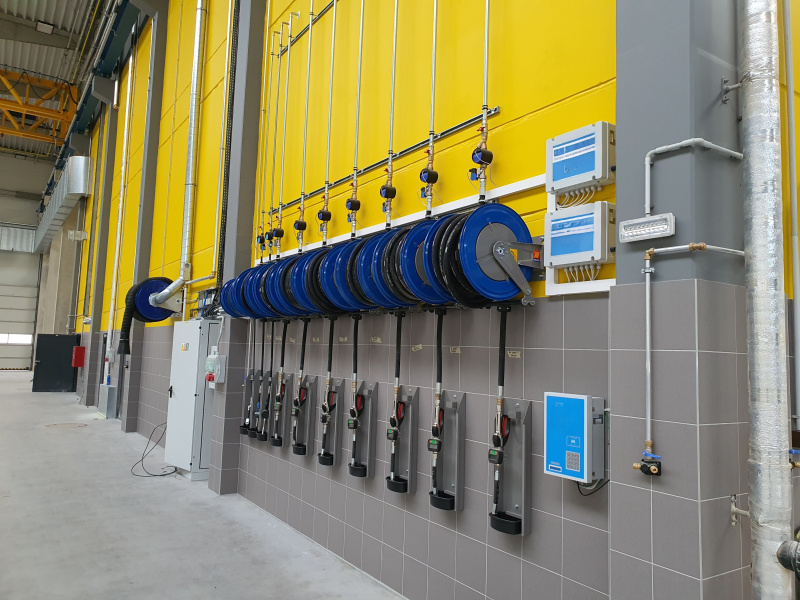 Komplette Realisierung der Ölwirtschaft für das bedeutende Unternehmen APB in Pilsen-Losiné. Insgesamt 37 Ausgabestellen für neue Flüssigkeiten – Öle und Kühlmittel. Sammlung von Altöl in einem unterirdischen Tank mit einer Gesamtkapazität von 15.000 l. Ausgabe aller neuen Flüssigkeiten über ein Überwachungssystem mit direkter Anbindung an die interne Software des Kunden – K2. Lagerung neuer Flüssigkeiten in doppelwandigen Tanks mit einem Fassungsvermögen von 400 l bis 1500 l. Ausgabe der Flüssigkeiten durch leistungsstarke Druckluftpumpen. Sonderanfertigung von Ständern zum Aufhängen von Ausgabewicklern für hohen Durchfluss (Schlauch 1" und Länge 25 m).