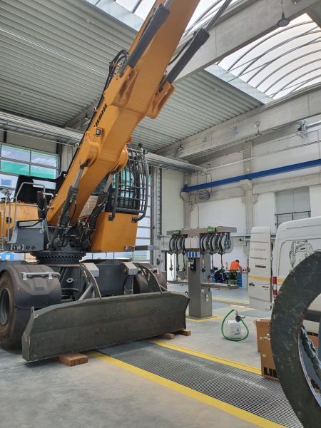 Absaugung des Altöls direkt aus den Montagegruben, die mit fahrbaren Auffangwannen mit Absaugpumpe ausgestattet sind.