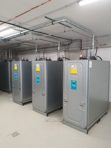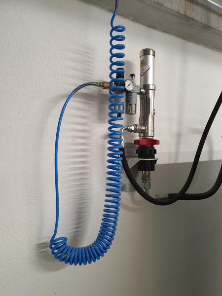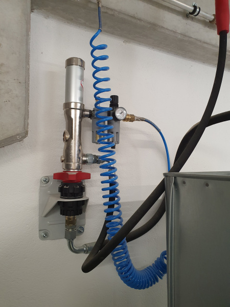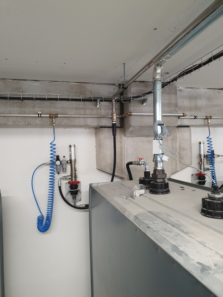 Lieferung einer kompletten Ölwirtschaft für eine der größten Sägewerke in Europa – Sägewerk Štětí. Befüllung der im Obergeschoss befindlichen Lagertanks mittels einer an der Fassade des Gebäudes angebrachten Abfüllbox, die mit einer elektronischen Füllstandsmessung ausgestattet ist. Ausgabe der Öle über Abroller, die auf einem Ständer im Werkstattbereich angebracht sind. Der Ständer ist mit einer elektronischen Ausgabeverfolgung ausgestattet, die die Daten an einen PC überträgt.