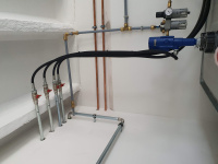 Ausgabe neuer Öle und Sammlung gebrauchter Öle für den SCANIA-Service in Pardubice. Die Ausgabe neuer Flüssigkeiten wird durch ein System zur Datenübertragung an einen PC überwacht. Lagerung neuer Öle in doppelwandigen Tanks mit pneumatischen Pumpen. Sammlung gebrauchter Öle in doppelwandigen, vollständig aus Metall gefertigten, speziell angefertigten quadratischen Tanks.