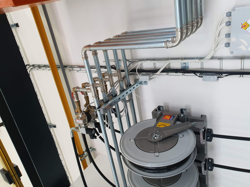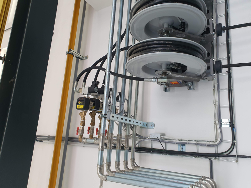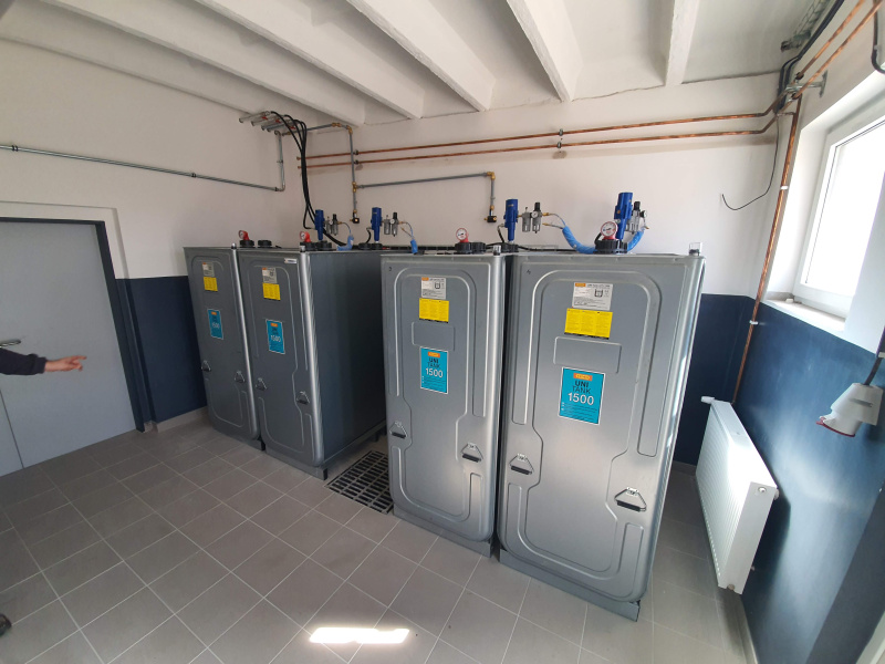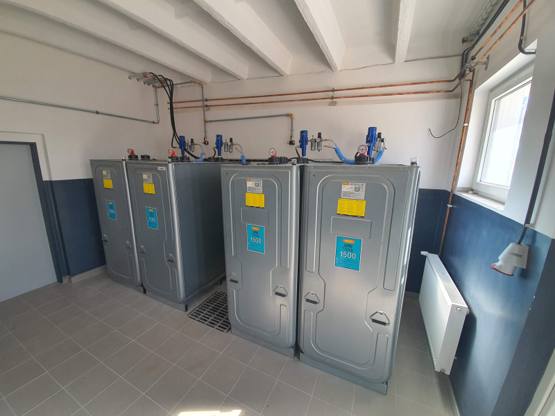 Ausgabe neuer Öle und Sammlung gebrauchter Öle für den SCANIA-Service in Pardubice. Die Ausgabe neuer Flüssigkeiten wird durch ein System zur Datenübertragung an einen PC überwacht. Lagerung neuer Öle in doppelwandigen Tanks mit pneumatischen Pumpen. Sammlung gebrauchter Öle in doppelwandigen, vollständig aus Metall gefertigten, speziell angefertigten quadratischen Tanks.