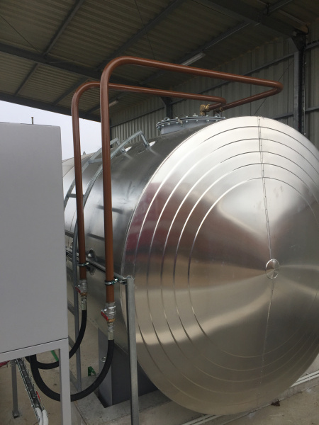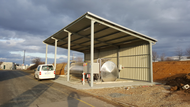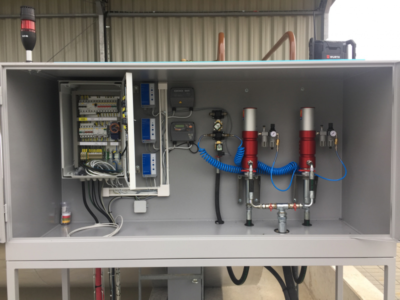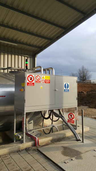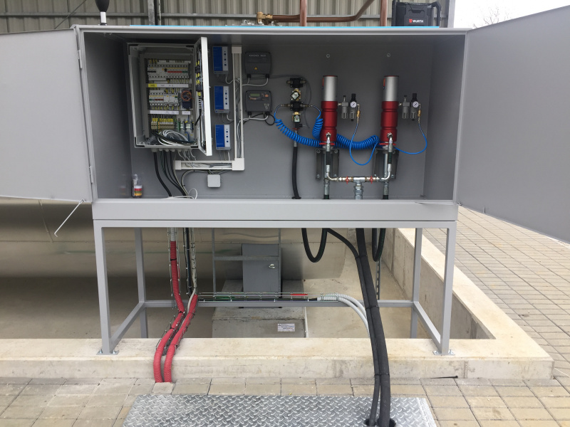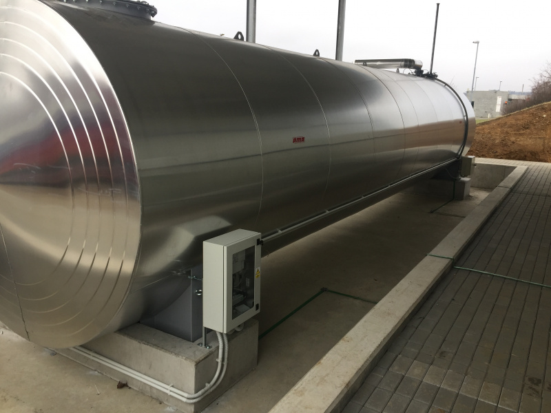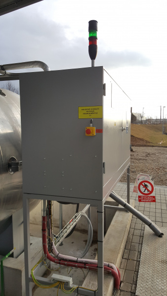 Realisierung einer Ölwirtschaft für die Produktion von Valeo Žebrák. Lagerung von Spezialverdampfungsöl in einem vollständig aus Metall gefertigten Doppelwandtank, der mit einer Isolierung und einer Heizung mit Thermostat ausgestattet ist. Tankkapazität 30.000 l. Der Tank ist mit einem Rührsystem ausgestattet. Lieferung eines speziellen Verteilers zur Steuerung der Pumpenfunktion und der gesamten Elektronik. Das gesamte System dosiert automatisch Öl für die Produktionsmaschinen. Die Verteilungen bestehen aus gepressten Stahlrohren.