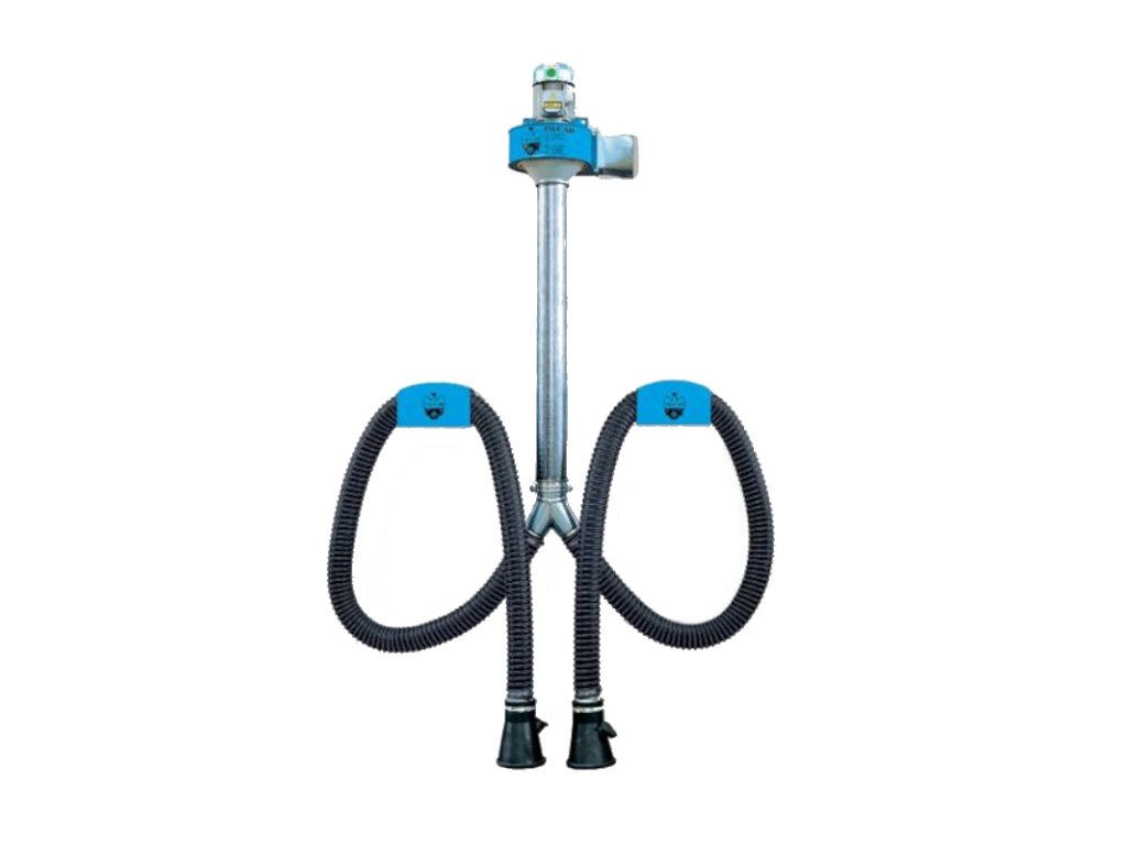 - Wandmontierte Doppelauspuffanlage für kleine und mittlere Fahrzeuge.- Separates Absaugsystem.