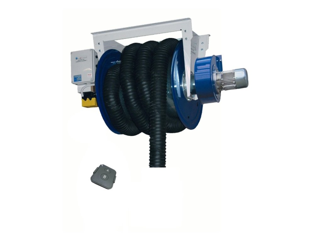 - Motorgetriebener Wickler mit Gebläse und Fernbedienung zum Ziehen und Absenken des flexiblen Saugschlauches.- Komplett mit elektrischem Sicherheitsstopp und ferngesteuertem Gebläse ein/aus.
